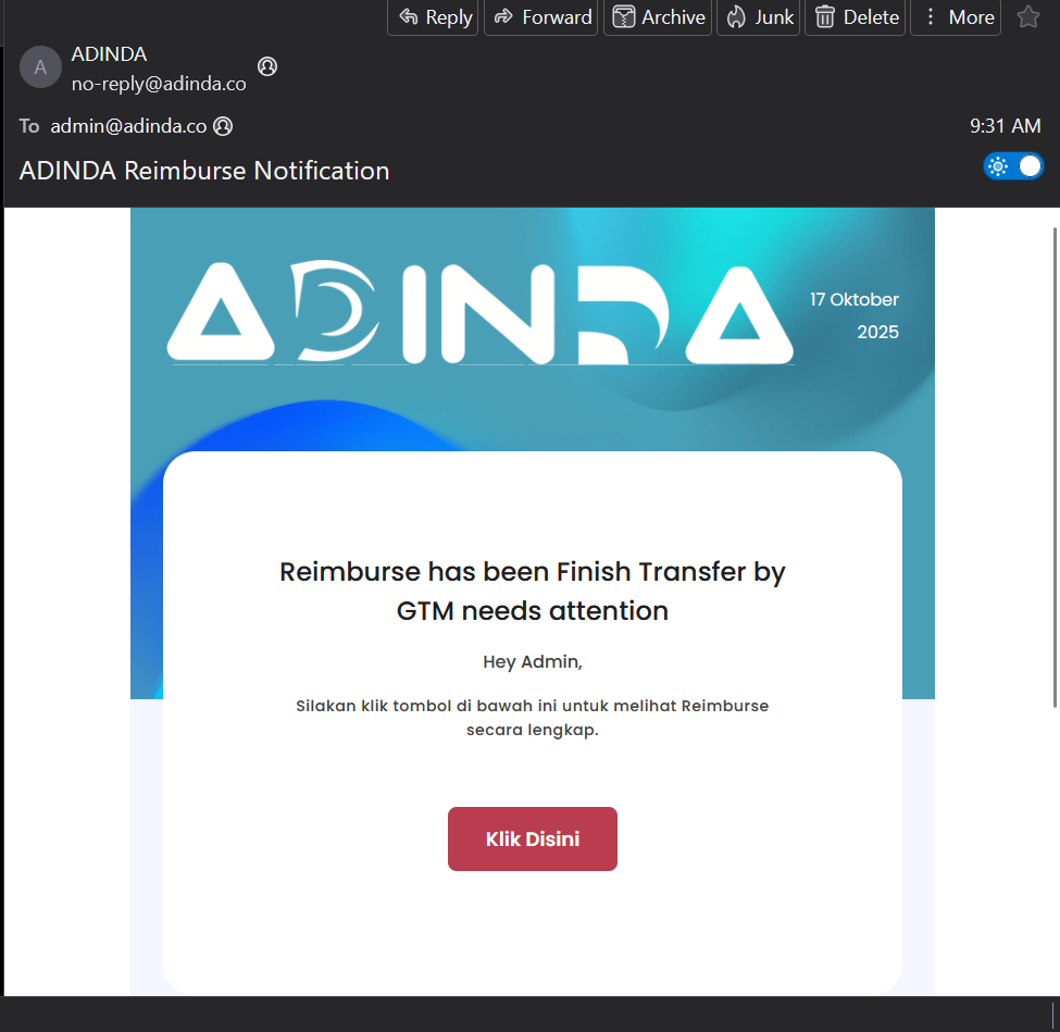 - Mohon untuk Trust Email no-reply@adinda.co untuk menerima notifikasi secara langsung tanpa harus melihat Folder SPAM